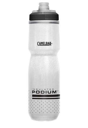 BIDON CAMELBAK PODIUM CHILL 710ML vrhunski je bidon s dvostrukim stijenkama koje čuvaju vodu hladnom dvostruko duže u usporedbi s klasičnim bidonima. Dizajniran za profesionalne i rekreativne bicikliste, pruža savršenu kombinaciju učinkovite hidratacije, lagane konstrukcije i optimalnog pristajanja u većinu držača bidona.