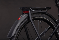 Za udobnost na dugim vožnjama tu su Suntour zračna vilica sa 100 mm hoda, parallelogram sjedalo i Efficient Comfort Geometry. Uz to, Integrated Carrier 3.0 nosač tereta, blatobrani, rasvjeta, postolje i zaštita lanca čine ovaj e-bike potpuno spremnim za gradske rute, vikend izlete ili daleka putovanja.