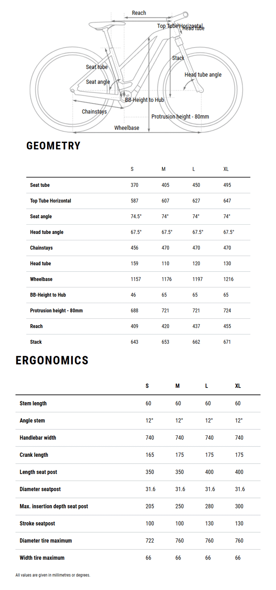 | Okvir | Aluminium Superlite, Gravity Casting Technology, Agile Ride Geometry, Boost148, Fully Integrated Battery, Advanced Internal Cable Routing, 1.5 Headtube, Kickstand/Fender/Carrier Mounting Points |