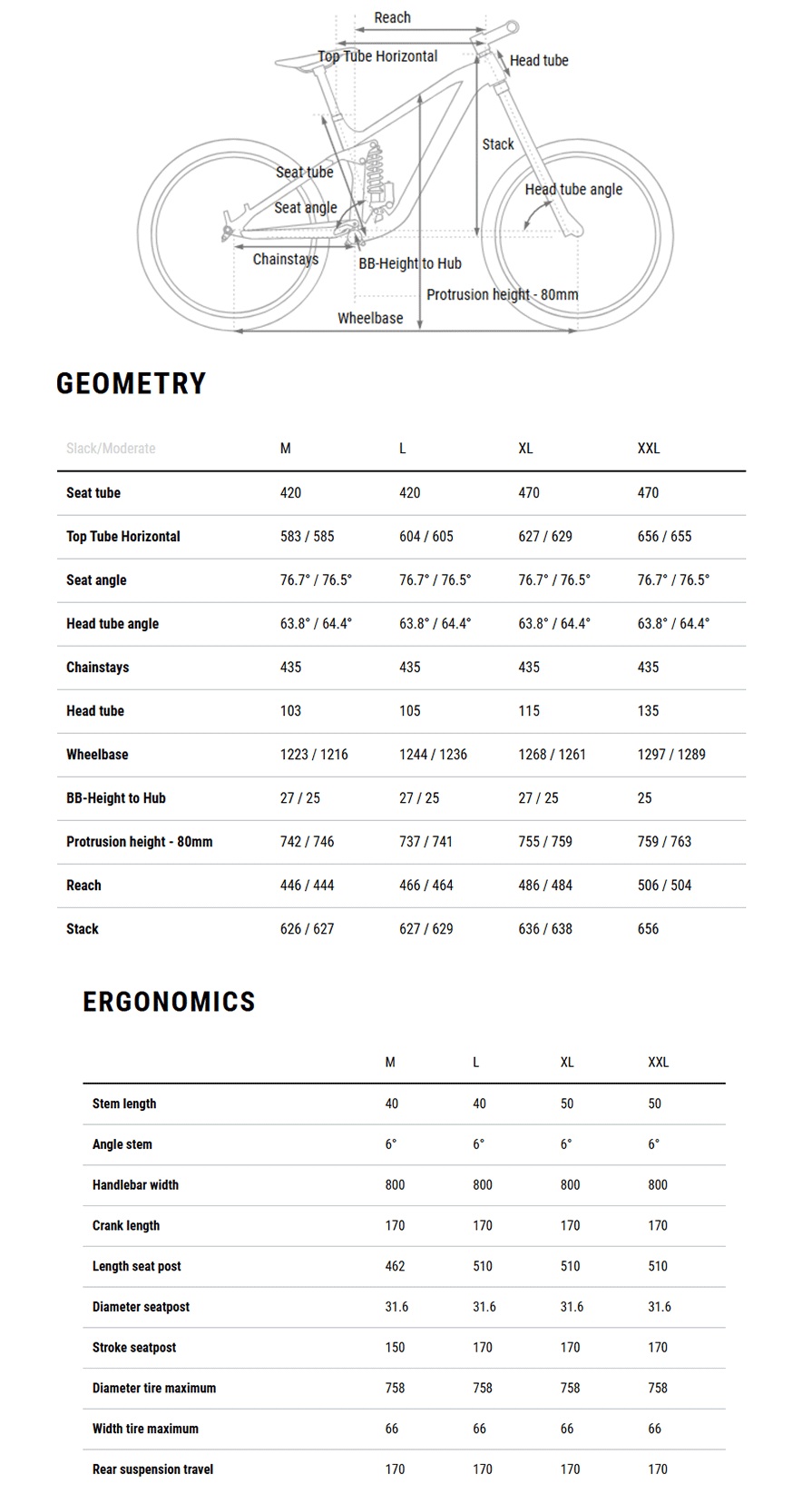 | Vanjske gume | F: Maxxis Assegai, MaxxTerra/EXO+, Tubeless Ready, 2.5 WT, R: Maxxis Minion DHR II, MaxxTerra/EXO+, Tubeless Ready, 2.4 WT |