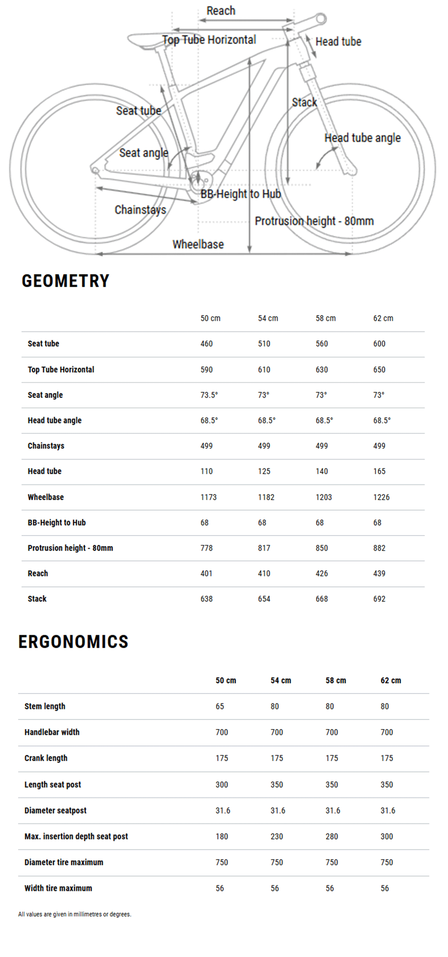 Classic: 50cm, 54cm, 58cm, 62cm