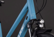 CUBE Touring ONE Trapeze osmišljen je za maksimalnu udobnost i jednostavnost uporabe. Njegov Aluminium Superlite okvir s Efficient Comfort Geometry geometrijom pruža stabilnost i intuitivno rukovanje, olakšavajući duge vožnje. Trapeze dizajn omogućava jednostavno penjanje i silazak s bicikla, bez kompromisa u čvrstoći ili sigurnosti. Interni routing sajli i Semi Integrated Carrier 2.0 nosač čine okvir elegantnim, a flat mount nogar omogućuje jednostavno parkiranje.