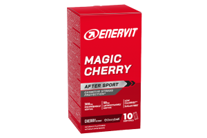 ENERVIT MAGIC CHERRY je inovativan dodatak prehrani u obliku praha, posebno razvijen za ubrzani oporavak nakon intenzivnog treninga ili natjecanja. Sadrži ekstrakt višnje CherryCraft® (Prunus cerasus L.), bogat polifenolima (300 mg po porciji) i vitaminom E, koji pružaju snažnu antioksidativnu zaštitu i pomažu u borbi protiv oksidativnog stresa uzrokovanog napornom fizičkom aktivnošću.