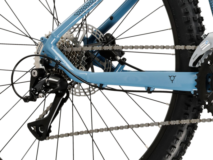 • Okvir je izrađen od aluminijske legure 6061, poznate po svojoj čvrstoći, otpornosti na oštećenja i maloj težini. Završna obrada u obliku prahastog lakiranja osigurava dugotrajan sjaj i zaštitu od ogrebotina. Unutarnje provlačenje kablova dodatno doprinosi estetski čistom izgledu i boljoj zaštiti u zahtjevnim uvjetima vožnje.