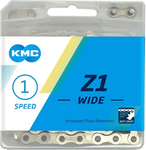 Lanac KMC Z1 Wide Silver namijenjen za pogonske sustave s jednom brzinom (single speed/BMX/fixie).