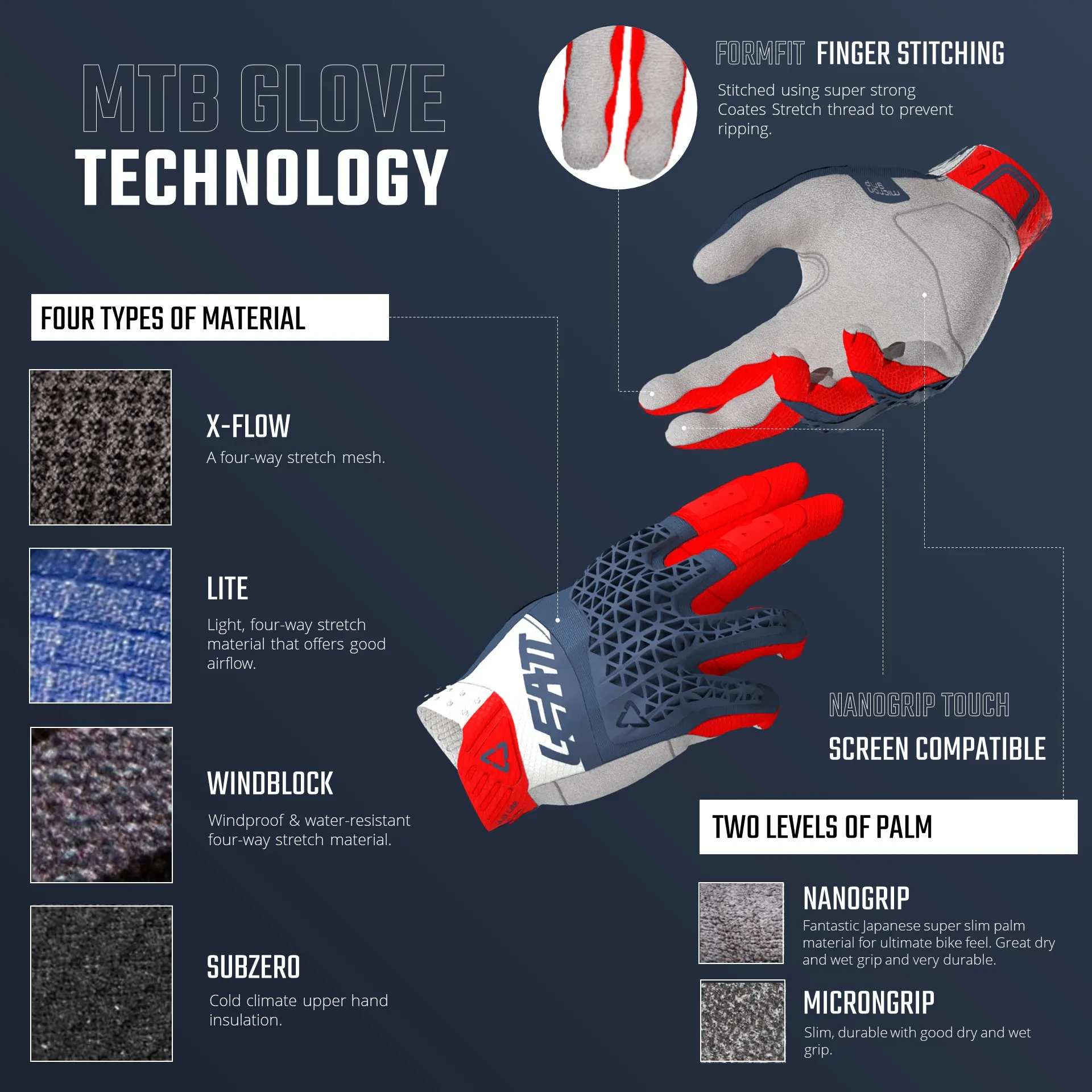 Izrađene od propušnog, rastezljivog materijala, ove nezaštitne rukavice bez zaštite od udaraca dizajnirane su s fokusom na performanse i udobnost. Zahvaljujući MicronGrip dlanovima, pružaju iznimno prianjanje u suhim i mokrim uvjetima, dok FormFit šivanje prstiju osigurava precizno prijanjanje i vrhunski osjećaj na upravljaču.